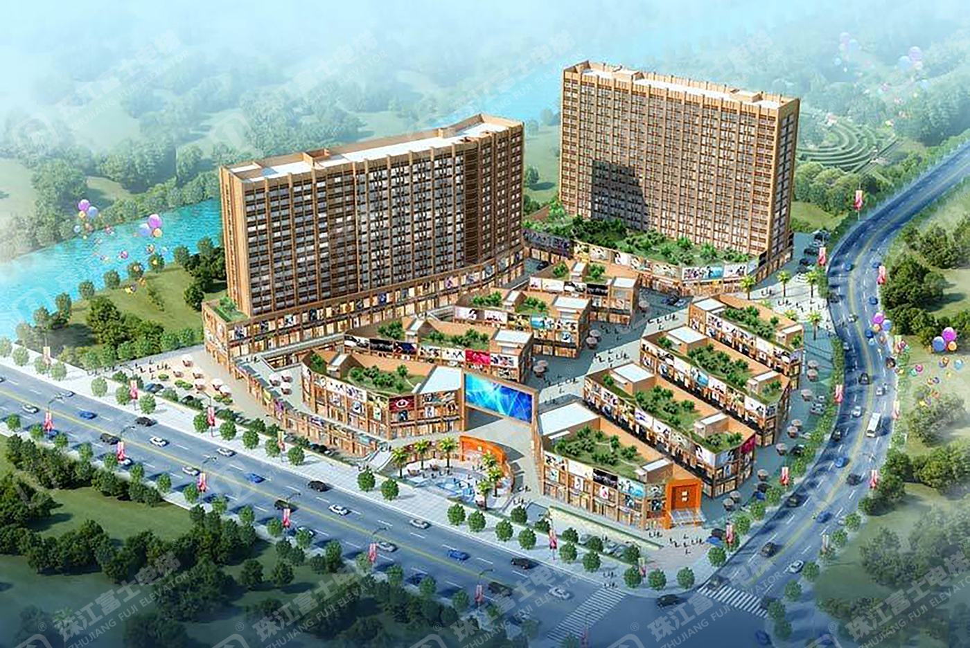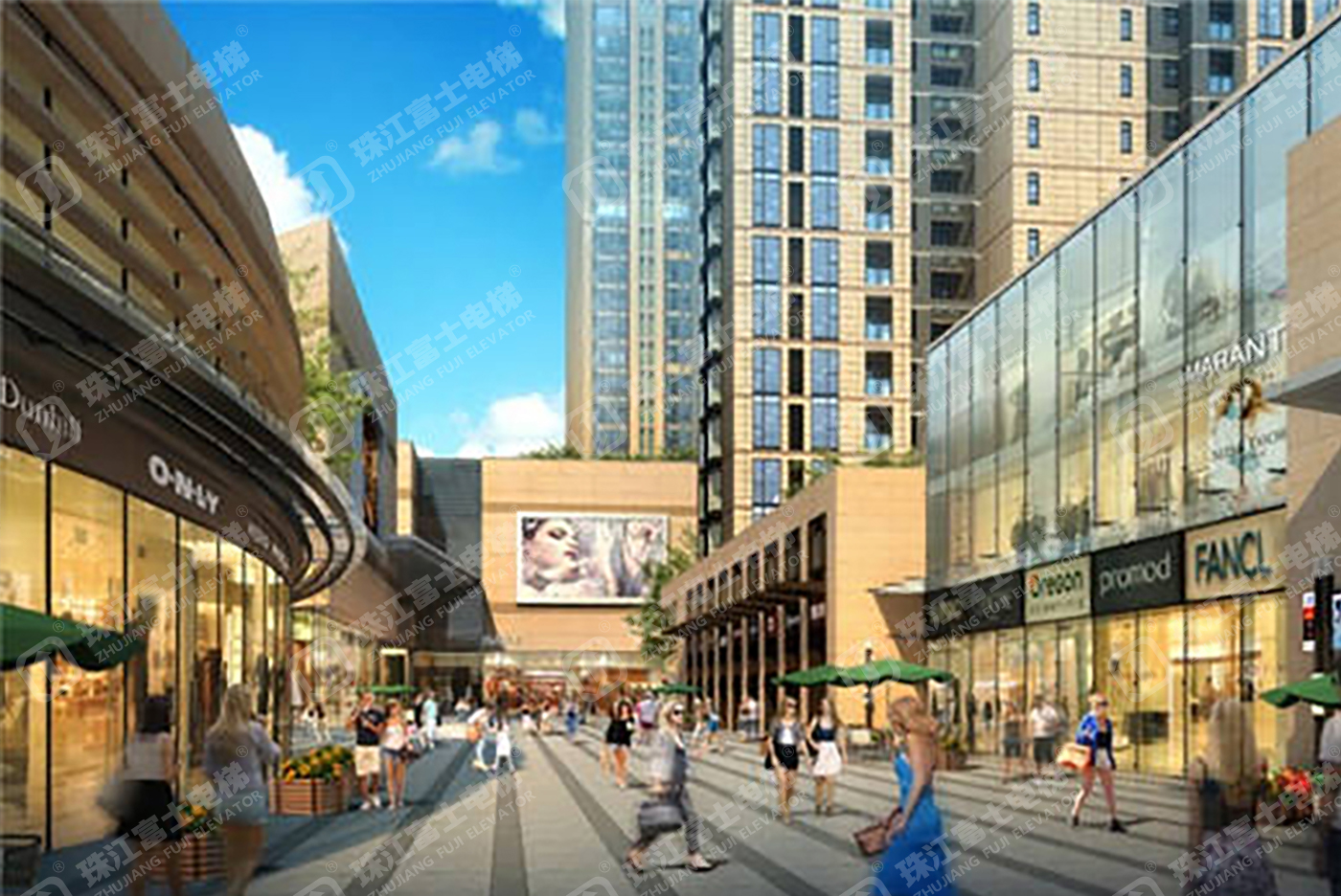 珠江富士電梯為該項(xiàng)目提供了10臺(tái)GSTK1050kg、1.75m/s的高速乘客電梯。