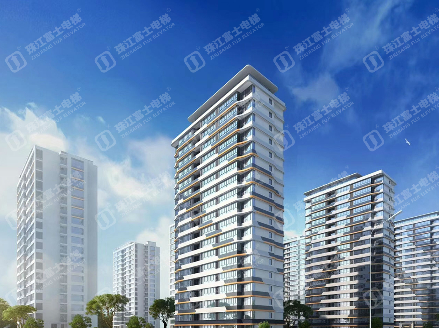 珠江富士電梯為該項目提供了18臺電梯產(chǎn)品:11臺GSTK1050kg、1.75m/s的乘客電梯,7臺GSTK900kg、1.75m/s的乘客電梯。