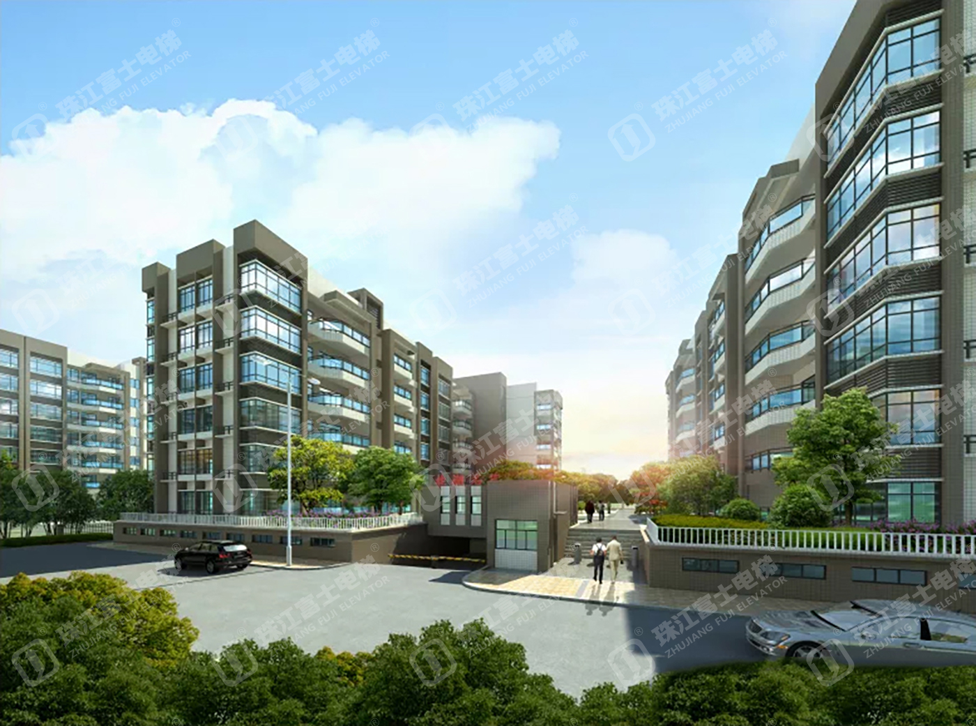 珠江富士電梯為該項(xiàng)目提供了11臺(tái)GSTK1050kg、1.6m/s的乘客電梯。