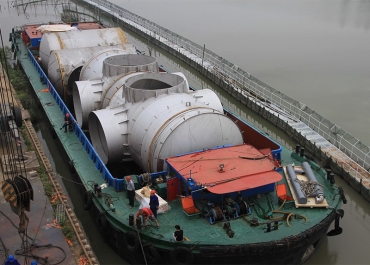 杭氧集團(tuán)在廣西杭氧盛隆投的8萬(wàn)m3/h空分設(shè)備  (國(guó)內(nèi)首套)已于2013年8月投入運(yùn)行,該8萬(wàn)空分設(shè)備的空冷、水冷塔是有美克斯機(jī)械制造,最終使用水路運(yùn)輸?shù)竭_(dá)目的地。